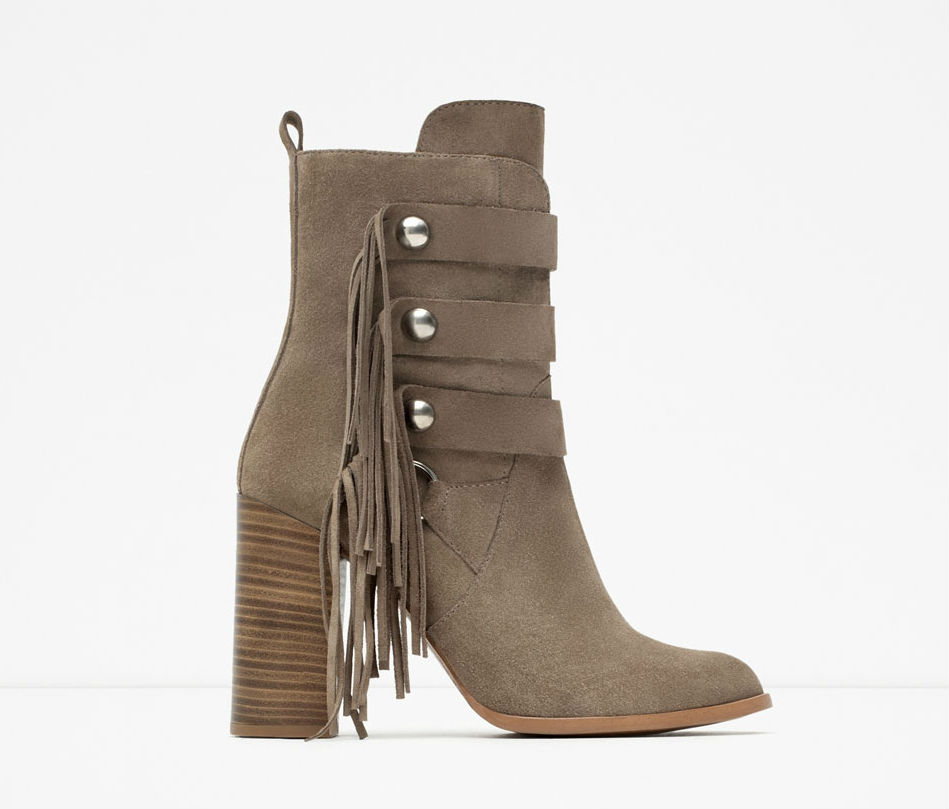La firma de Inditex los utiliza en infinidad de conjuntos: desde vestidos lady hasta pantalones culotte, pasando por los shorts y petos más seventies. Este otoño invierno 2015/16 las combinaciones son infinitas pero una cosa es cierta, los botines no pueden faltar.