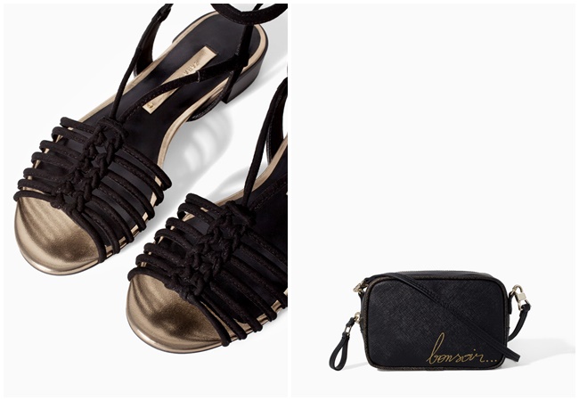 Para los días que tienes que hacer mil cosas y prefieres ir lo más cómoda posible opta por estas cangrejeras de piel en negro y dorado (29’99€) que incorpora los mismos colores que esta bandolera tan parisina (12’99€).