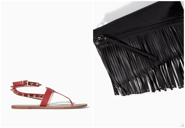Apúntate a lo salvaje con sandalias planas de pinchos (29’99€) y cartera de mano con flecos (39’99€).