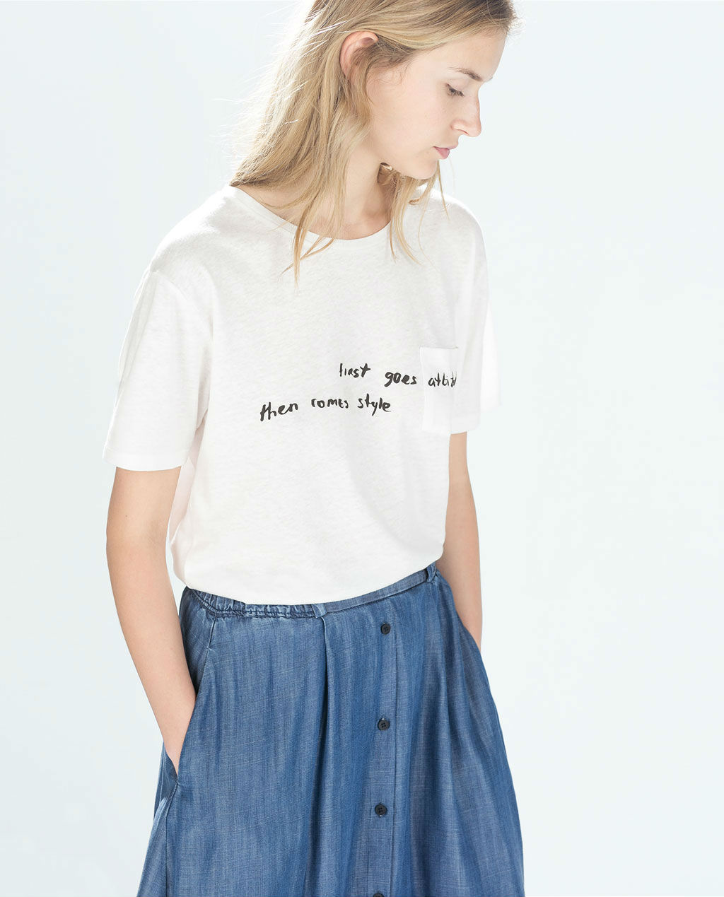 Las t-shirts de Zara aportan a tus looks ese aire desenfadado que puede dar un giro de 360º a través de los complementos.