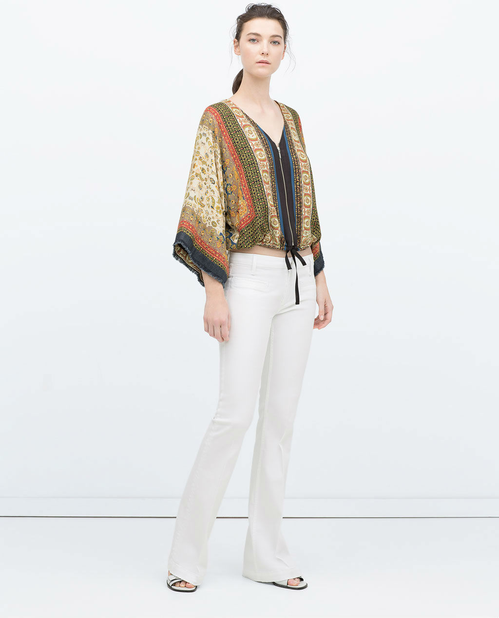 Aquí te enseñamos un modelo con cremallera que podría ser perfectamente una blusa, pero en realidad se trata de un kimono estampado. ¡Dos productos en uno!