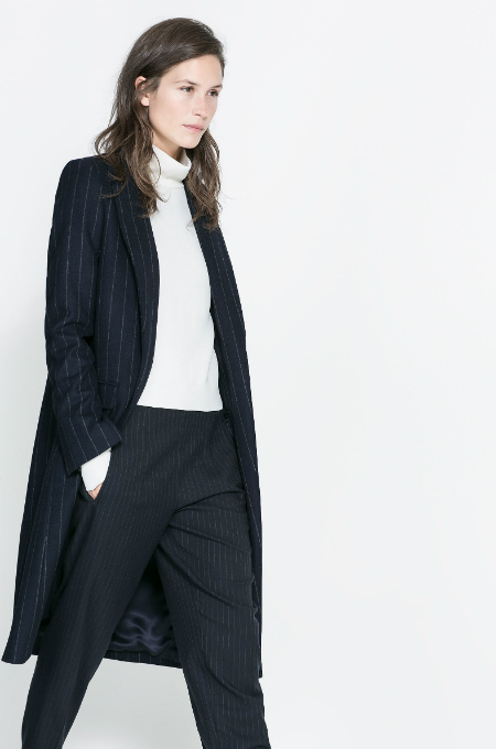 Para la mujer trabajadora que busca un estilismo formal y elegante, el abrigo de raya diplomática es una puesta acertada.