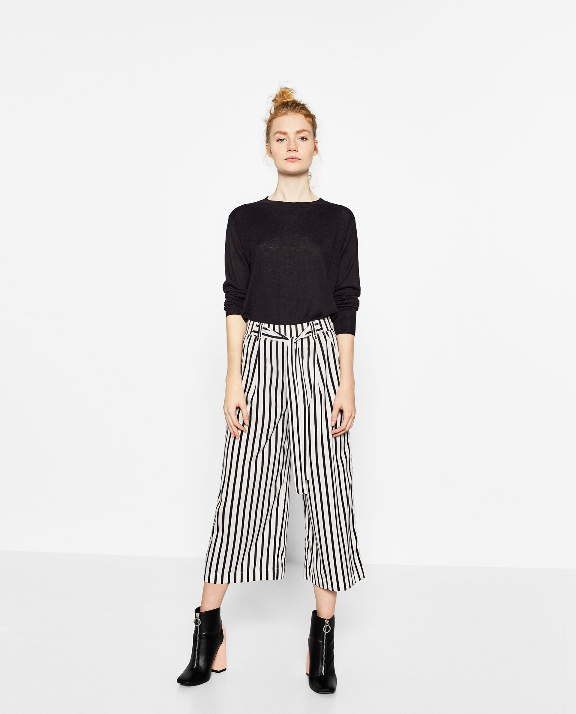 Si los vestidos no te molan, ZARA tiene disponible varios pantalones en diferentes modelos pantalón Cropped Fluido de rayas, así como un pantalón cargo de bolsillos ceñido en la cintura bastante cómoda.