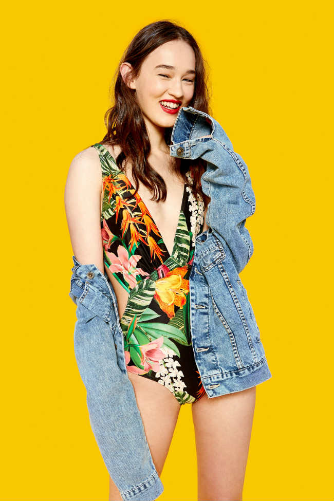 Como veis, el amarillo y los colores tropicales llegan más fuerte que nunca vistiendo prendas tan increíbles, alegres y favorecedoras como este bañador con súper escotazo en V que bien podría servir como un body y lucirlo con unos shorts vaqueros. ¿Quién no puede resistirse a él?