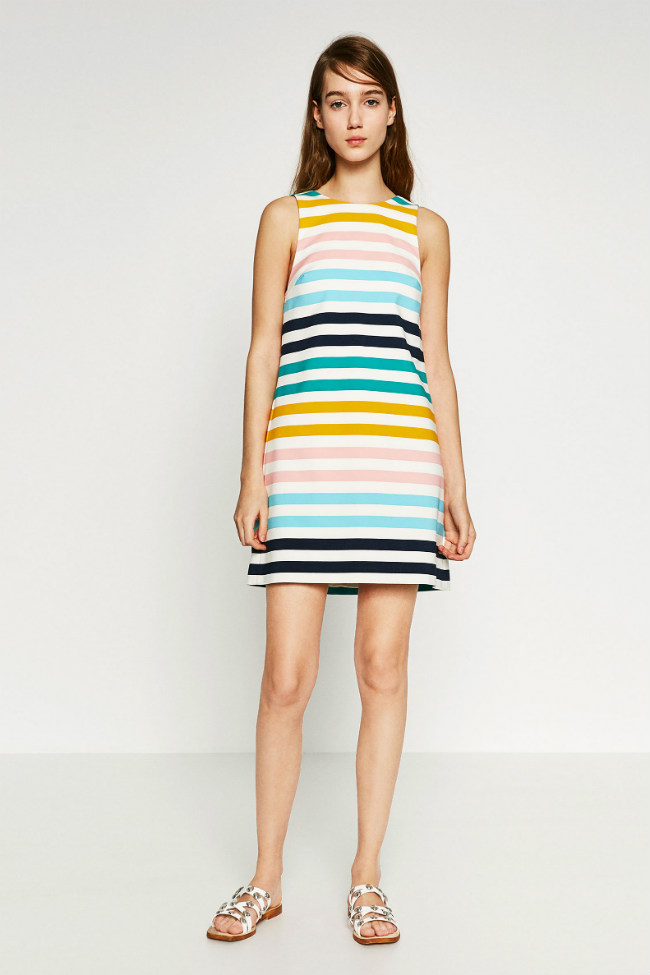 El print de rayas es uno de los estampados, junto con el tropical print, que más está arrasando esta temporada primavera verano 2016. Con colores vivos y llamativos como el de este vestido en el que el rosa, el azul y el amarillo se alían con el blanco para crear este precioso y original diseño a rayas en un vestido recto súper chic con el que podrás dar paseos infinitos veraniegos con muchísimo estilo.