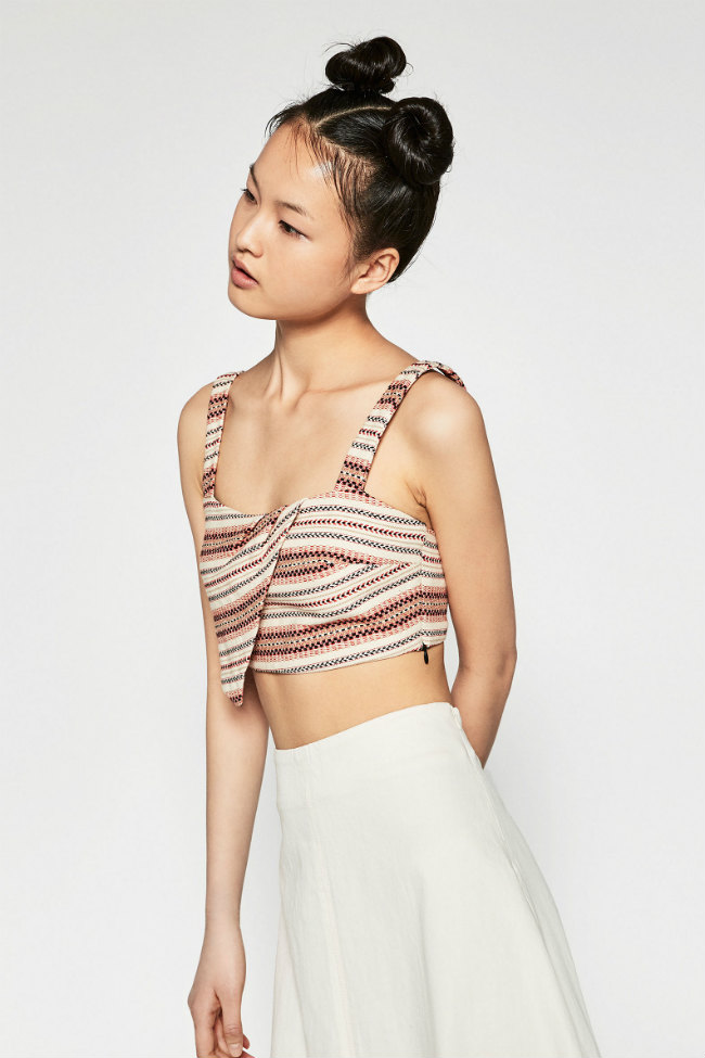 Los crop top siguen siendo tendencia y Zara nos presenta diseños únicos y súper favorecedores de los que nos enamoraremos a primera vista. Prueba de ello es este precioso crop top en tonos rosa cuarzo y blanco asimétrico perfecto para combinar con unos shorts blancos o una falda midi de estilo lady. ¡Nos encanta!