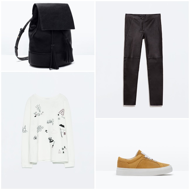 Todo eso se ha terminado, hemos elaborado dos looks muy casual y desenfadados con la nueva colección de Zara Primavera Verano 2015. En ambos incluímos los pantalones de efecto cuero para que te inspires y saques de tu armario los tuyos.