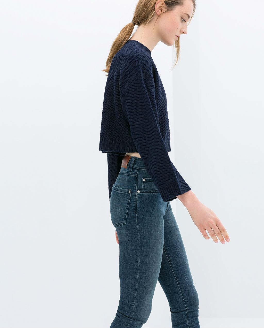 Para las noches más frescas puedes optar por un crop top de punto en azul marino.