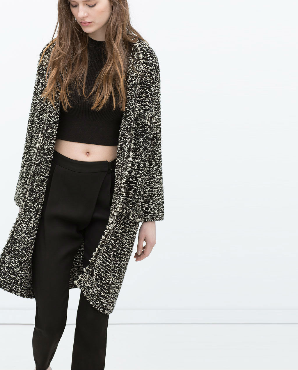 Añade un poco de color y estampado a tus looks más abrigados, Zara incluye en estas rebajas un abrigo en jacquard y manga ¾.