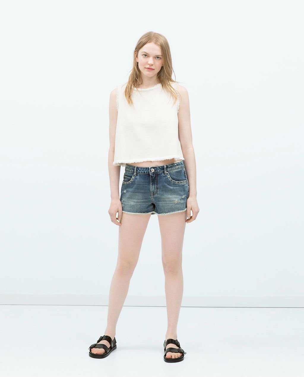 Zara cuenta con este producto en su colección Primavera Verano 2015, pero en vez de estancarse en los clásicos pantalones cortos la cadena de Inditex apuesta por los estampados, desgastados, botones y un denominador en todos ellos, el tiro alto.