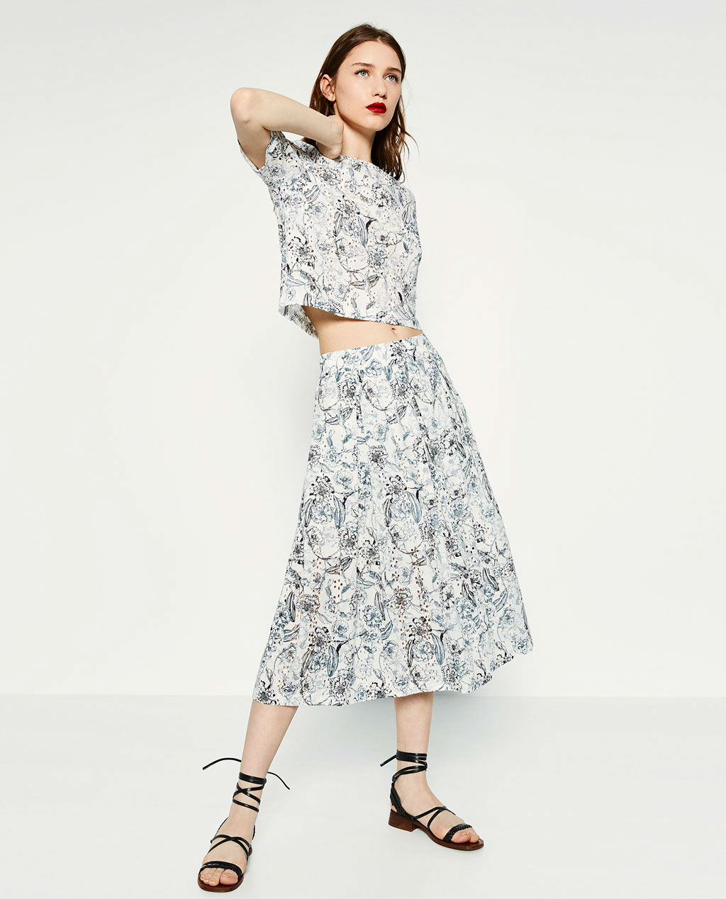 No te compliques la cabeza para combinar tus estilismos, la tendencia matchy-matchy ha llegado para facilitarnos esta tarea. ¿Cómo? Empleando tops y faldas midi con el mismo print, una forma de conseguir el look 10 y sacar el máximo partido a cada producto, ya que puedes combinarlas a la vez o por separado.
