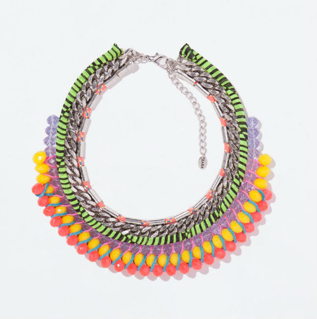 En la Nueva Colección de Zara podrás encontrar collares de todos los estilos y colores. Esta temporada se llevarán los colores llamativos como el naranja o amarillo y las incrustaciones efecto cristal.