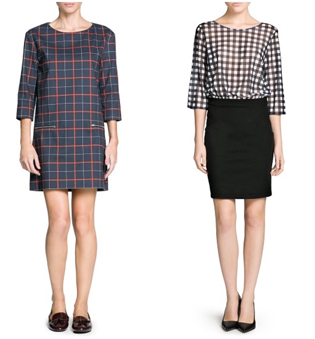 Los cuadros escoceses que presentaban las diseños de la pasada temporada otoño invierno 2013/14 se convierten en cuadro vichy creando un efecto cuadrícula.