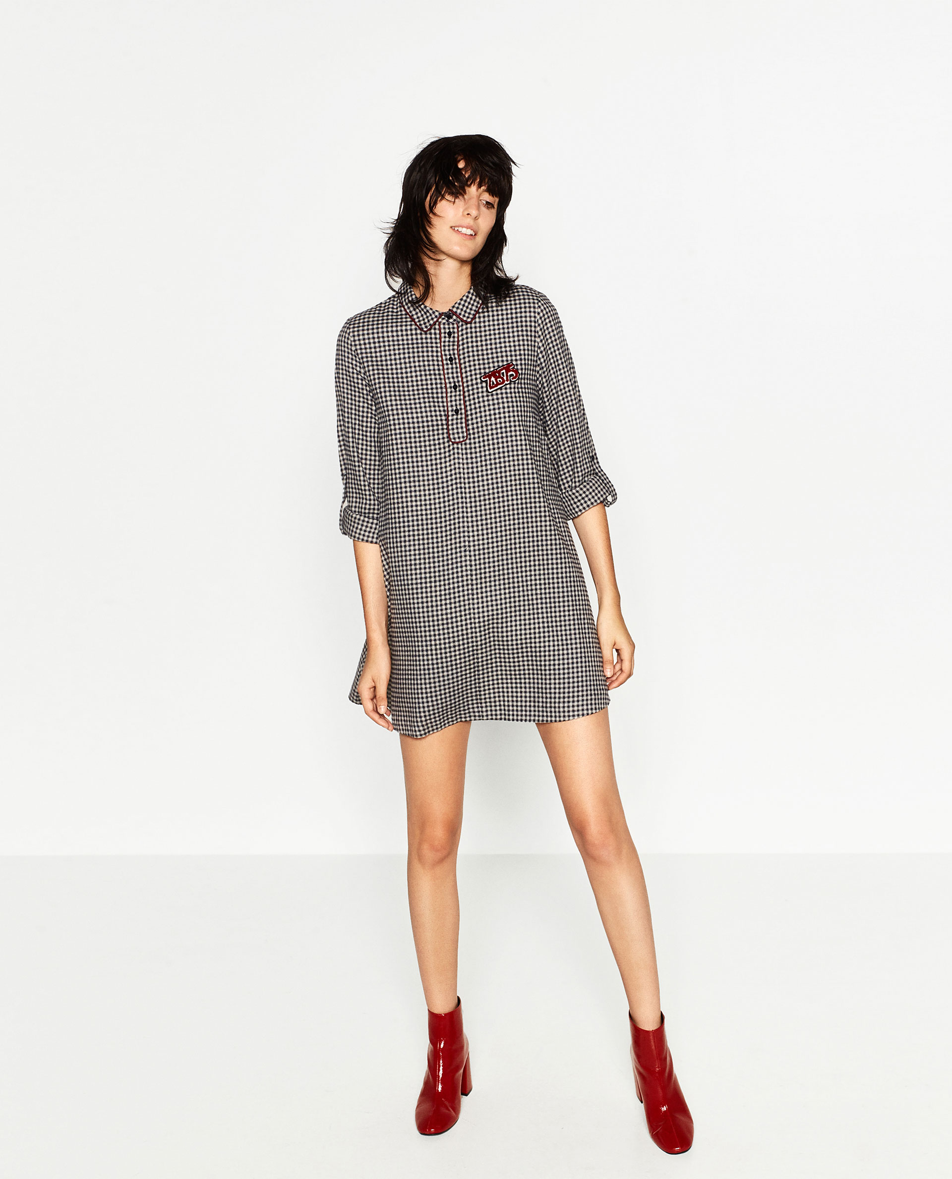 Zara despierta nuestro lado más casual y chic con este vestido de corte camisero y cuadros vichy. El Black & White se postula como uno de los estampados estrella de la temporada, y Zara lo combina con parches y detalles en burgundy. ¿Cómo combinarlo? Hay varias opciones: sneakers, botines o botas over the knee.