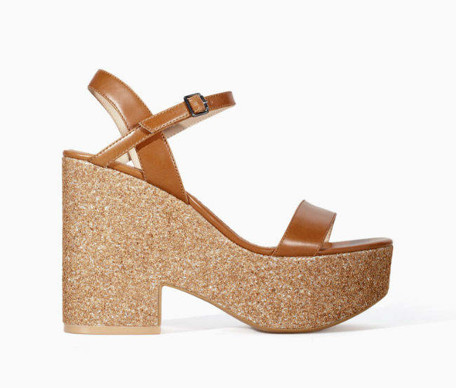 Si quieres estilizar tu figura sin sufrir demasiado estas cuñas son ideales. Aumentarás unos centímetros de estatura sin necesidad de hacer daño a tus pies. El toque original de este calzado lo aporta el glitter (19’99 €)
