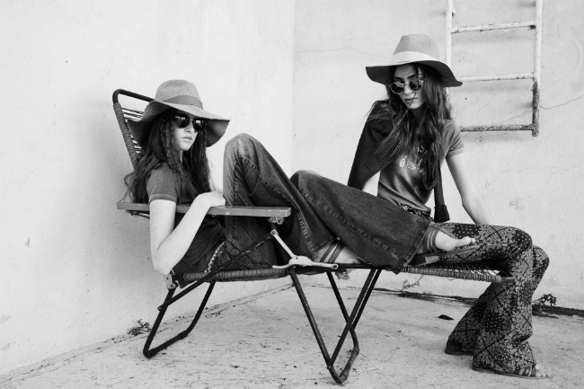 La marca de Inditex presenta jeans acampanados y estampados combinados con camisetas básicas en tonos neutros.