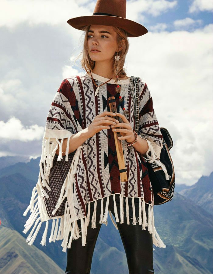 ¿Poncho? ¿Estilo boho? ¡La combinación 10! Este otoño invierno 2015/16 es una de las prendas más empleadas por las fashionistas. Aprovecha esta promoción de Buylevard y consigue tu poncho de print étnico en el color burgundy, negro y blanco. Los flecos terminan de rematar el combo, una opción que promete ser una de tus favoritas.