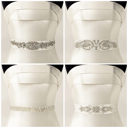 Además, la firma nupcial apuesta por los cinturones con materiales preciosos y brillantes para completar tu vestido y marcar la cintura.