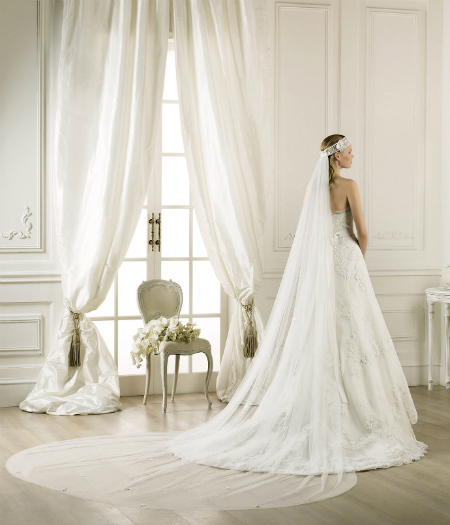 En primer lugar y como complemento fundamental que no puede faltar en el día más importante de tu vida tenemos el velo. Pronovias Barcelona lo propone en diferentes tamaños y con estampados sencillos y elegantes para que elijas el que más te guste.