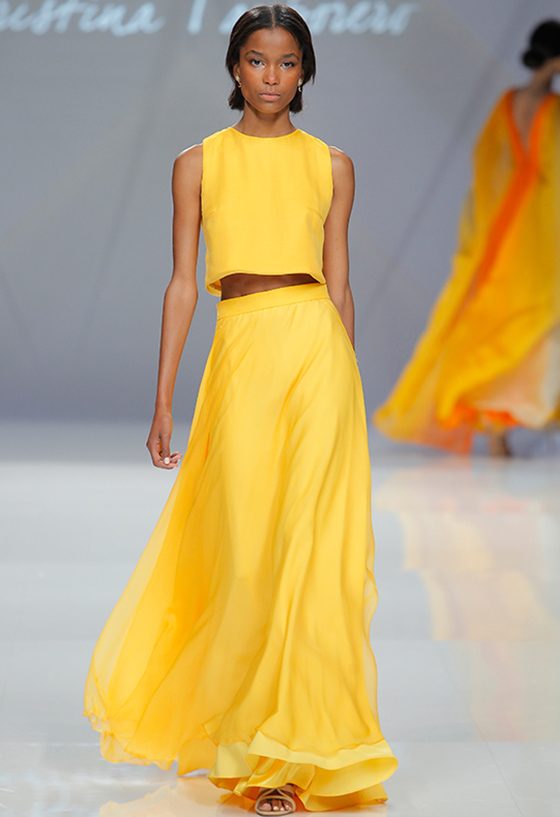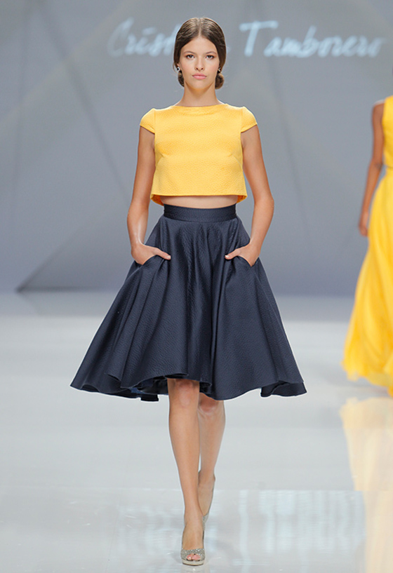 Respecto a la colección de fiesta y de ceremonia, Cristina Tamborero presenta Kontrast, una colección que se inspira en los contrastes tomando como protagonista los polos opuestos.