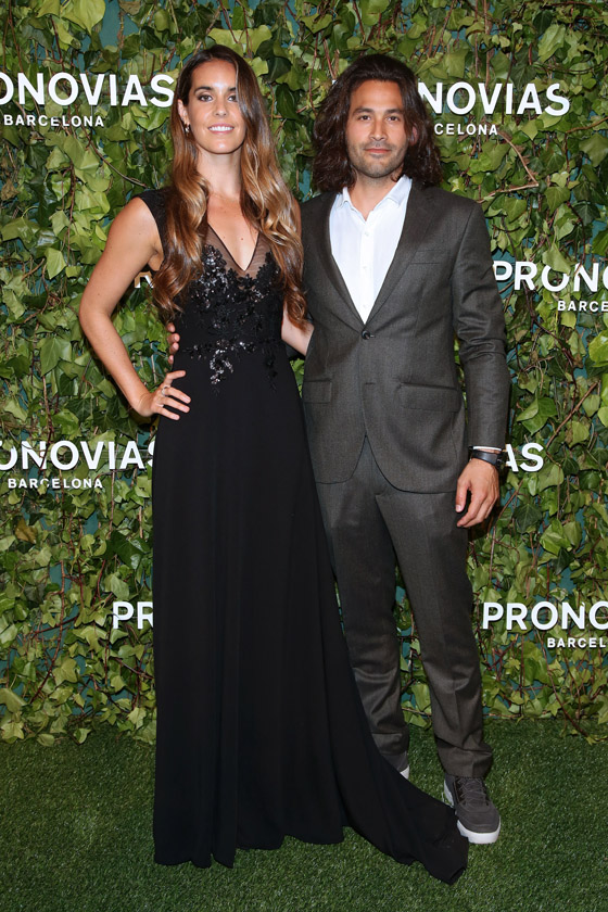 -Ona Carbonell: Sofisticado diseño negro de escote en V, con falda de crepé, cuerpo de tul y detalles de pedrería.