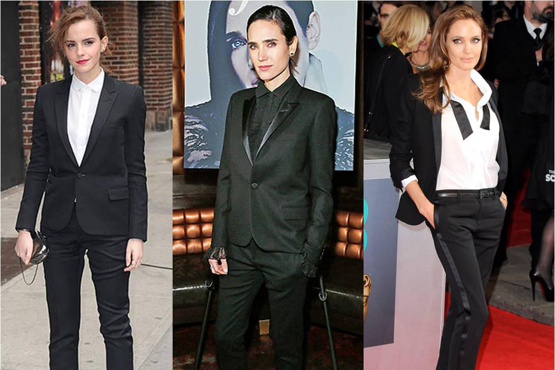 Desde que Marlene Dietrich se convirtiera en los años 30 en unas de las primeras mujeres en lucir un traje esmoquin, especialmente reservado para el vestuario masculino, el traje pasó a convertirse en un reclamo y en una forma de reivindicación, y para demostrar que lucir un vestido no tiene por qué ser un requisito único. Más adelante, fue el propio Yves Saint Laurent el que diseño numerosos modelos muy variados y distinguidos que le dieron fama mundial, y que hoy en día siguen luciendo muchas celebridades y actrices de Hollywood en los eventos más importantes y destacados en el mundo.