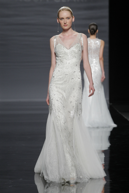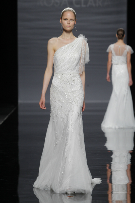 Rosa Clará apuesta por este diseño para la novia del 2014. En Barcelona Bridal Week presentó el corte sirena en vestidos de seda con lentejuelas bordadas.