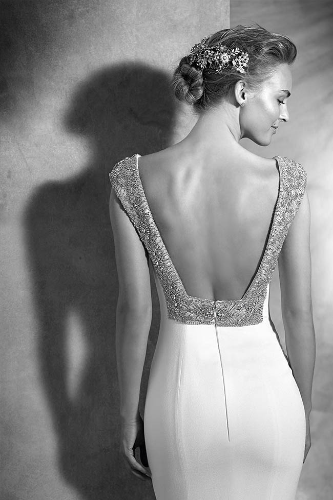 En tu boda cuida hasta el último detalle, los escotes en la espalda con pedrería son perfectos para crear un estilismo sutil, elegante y sensual al mismo tiempo. Los recogidos son los mejores a la hora de lucir este tipo de vestidos.