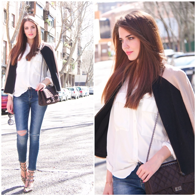 A través de su blog de Vogue «Clara Alonso Blog» la guapa modelo ha creado un outfit con prendas básicas que fácilmente todas tenemos en nuestros armarios y podemos copiar.