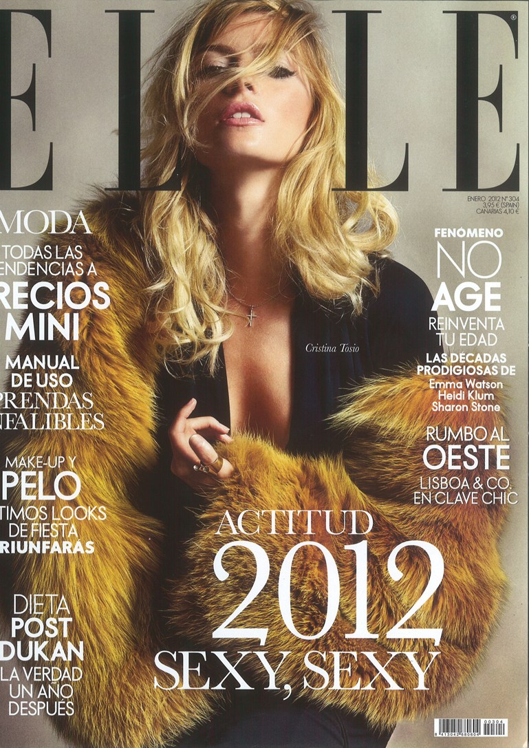 La revista ELLE da la bienvenida al 2012 con una imagen sexy, y para ello han tenido el lujo de contar con la top española Cristina Tosio. En este número de Elle enero 2012 podemos a la modelo en la portada, y protagonizando dos producciones: ‘Cuestión de piel’ y ‘Beauty Party’.